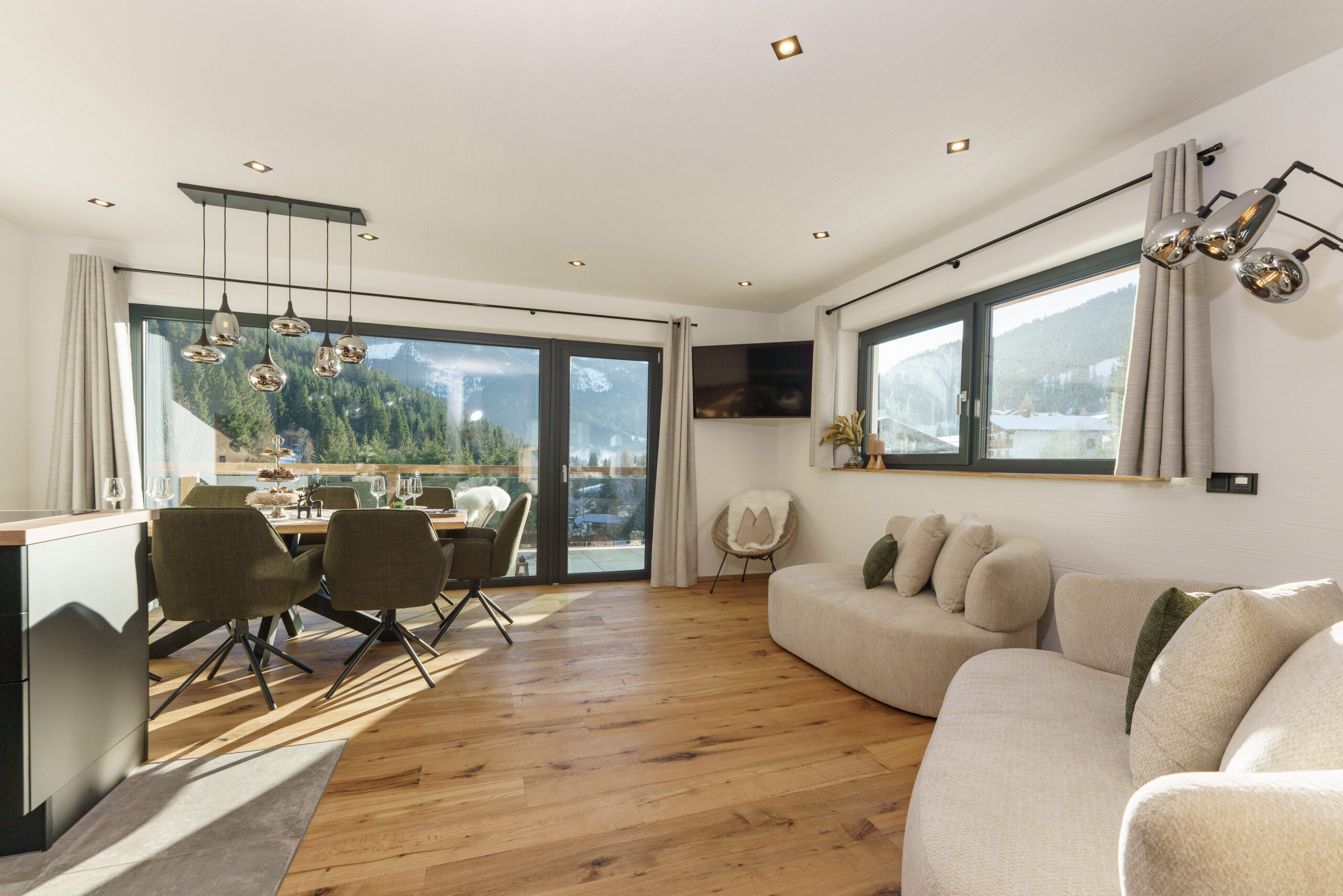 Ob Skitage im Winter oder Wanderabenteuer im Sommer – von unserem Chalet aus startet ihr direkt in euer Erlebnis. Euch erwarten drei behagliche Schlafzimmer, zwei Bäder, ein stilvoller Wohn-Essbereich mit voll ausgestatteter Küche sowie eine eigene Sauna für entspannte Stunden nach einem aktiven Tag.